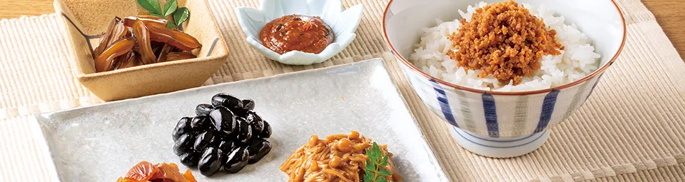 We never compromise on selecting the ingredients that form the foundation of our products. From the seven types of vegetables used in Fukujinzuke to the bounty of the sea and mountains used in our tsukudani and other delicacies, we carefully select only the finest materials in their peak seasonal condition. In recent years, we have also proactively increased our use of domestically sourced ingredients to ensure that our customers can enjoy our flavors with total peace of mind.