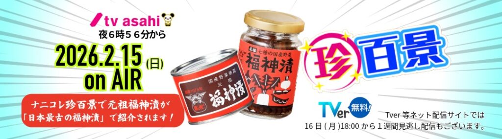 放送内では、「元祖福神漬」をゲストに試食いただくシーンも放映される予定です。