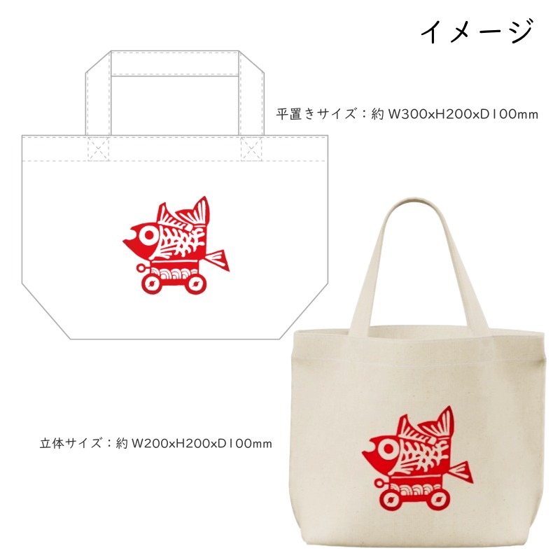 酒悦らしい、かわいらしく縁起のよい「鯛車(たいぐるま)」柄をあしらったトートバッグ。
