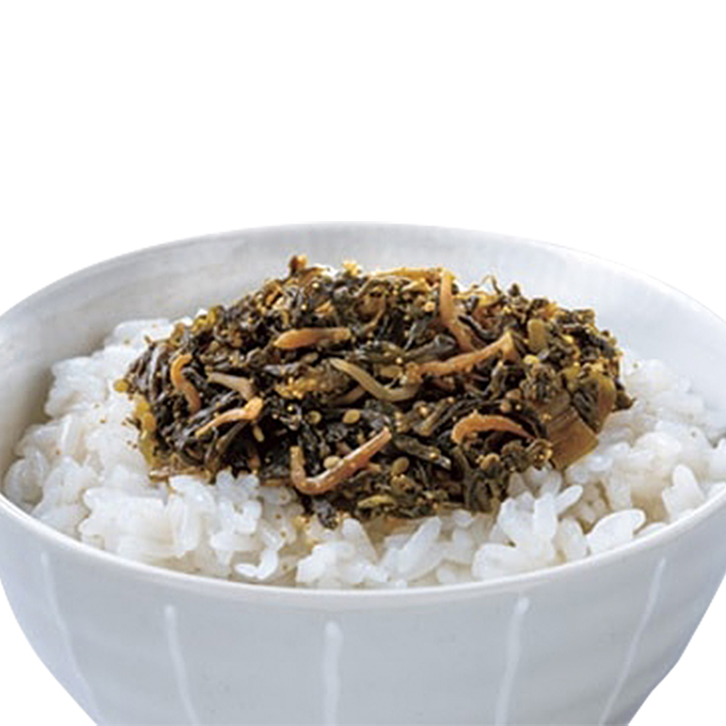 国産高菜に香ばしく焼き上げたたらことちりめんを合わせました。隠し味のオイスターソースで海鮮の風味と食欲引立つ味に仕上げました。