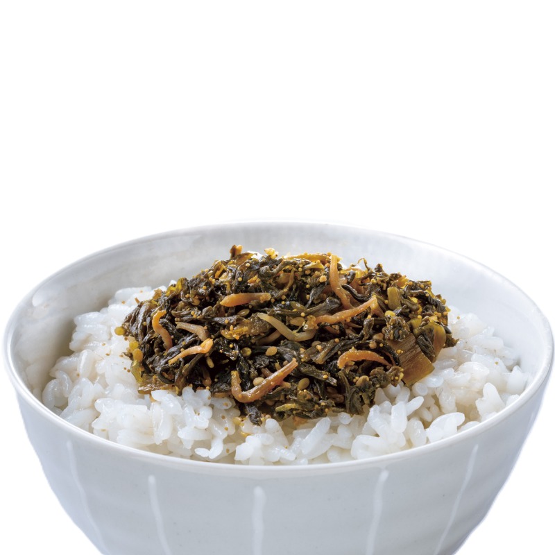 国産高菜に香ばしく焼き上げたたらことちりめんを合わせました。隠し味のオイスターソースで海鮮の風味と食欲引立つ味に仕上げました。