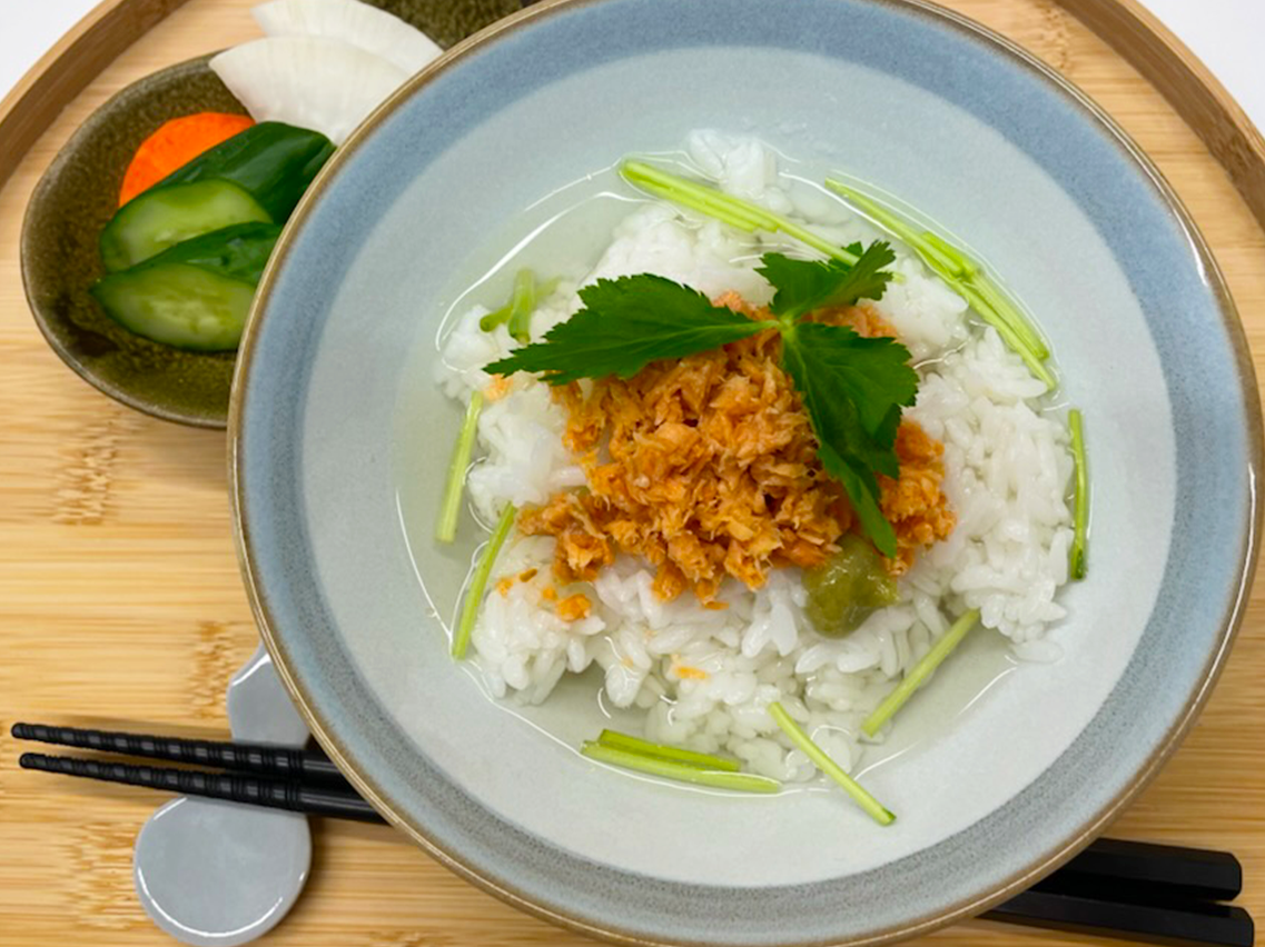 紅鮭ほぐしのお茶漬け風 レシピに使える商品 謹製 紅鮭ほぐし ※どの商品でも美味しく作ることができます。 材料(1人前) 1人前 25g ごはん 100g 粉末だし 小1/3 お湯 200ml 三つ葉 お好み量 作り方 お湯で粉末だしを溶き、出汁を作る お椀にごはんを盛り、紅鮭ほぐしをのせる 出汁をまわしかけ、お好みで三つ葉をのせたら完成 #ごはん#お茶漬け