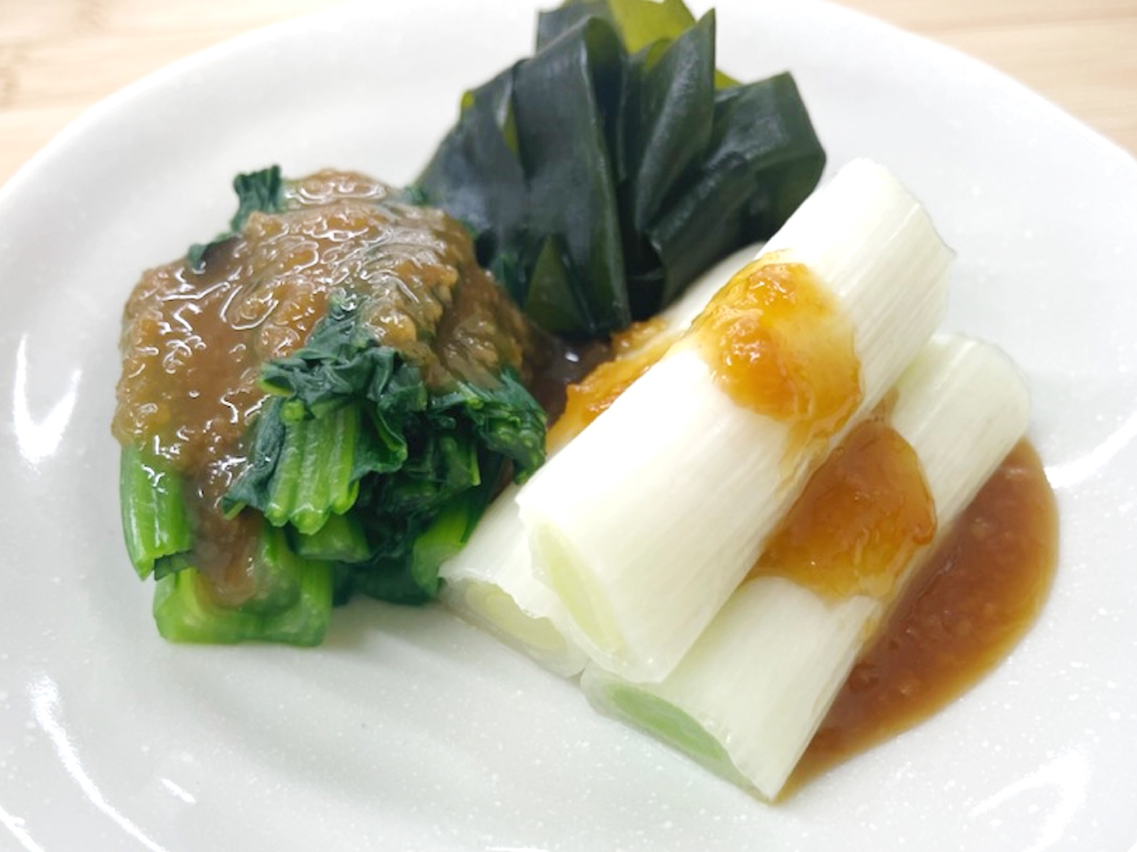 - 水戻ししたわかめと③をお皿に盛り、最後に酢みそをかけたら完成です。